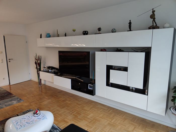 - Parquet flooring in living areas, tiles in bathroom and kitchen